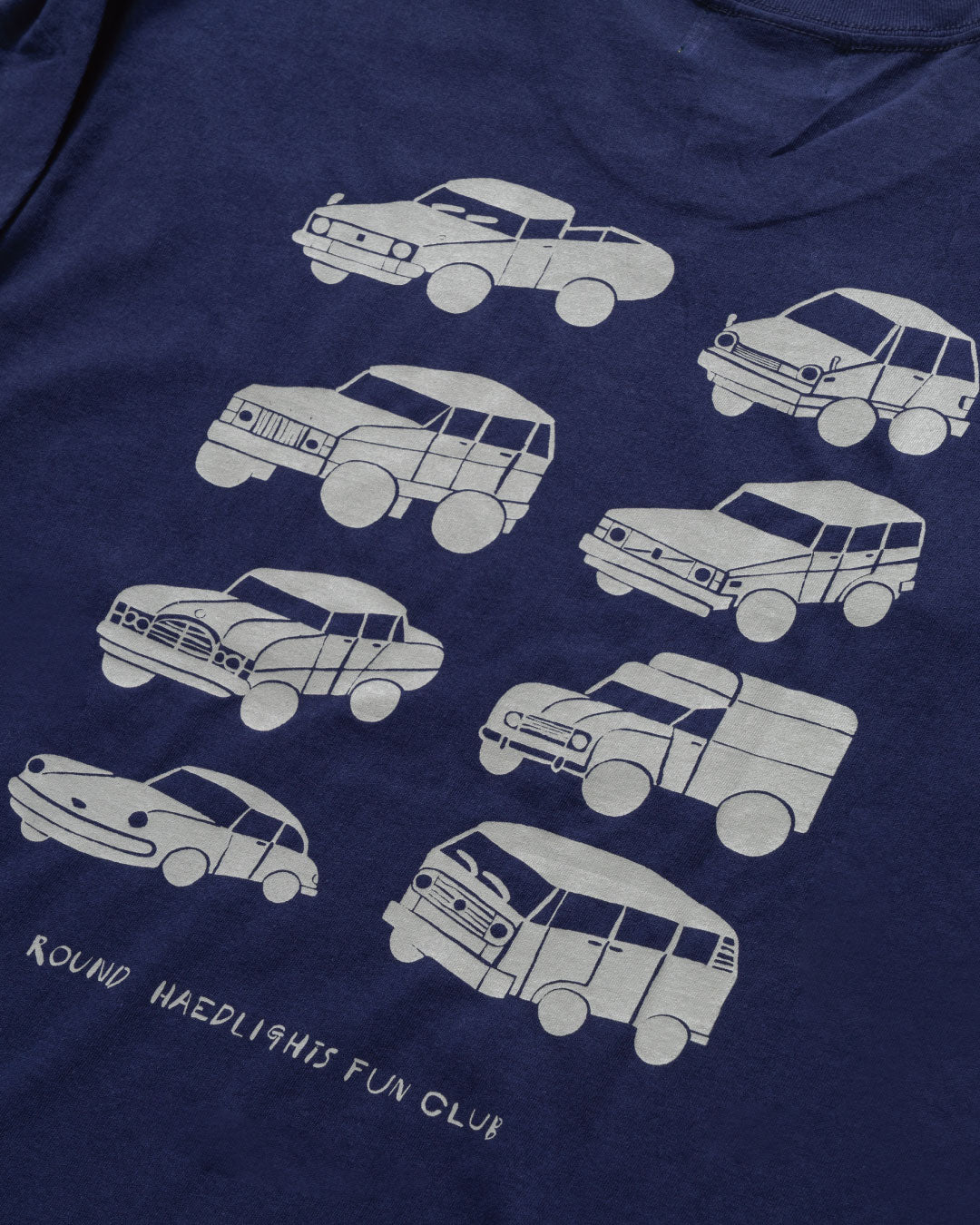 イラストレーター勝山八千代による丸目のヘッドライト愛好者長袖Tシャツです。